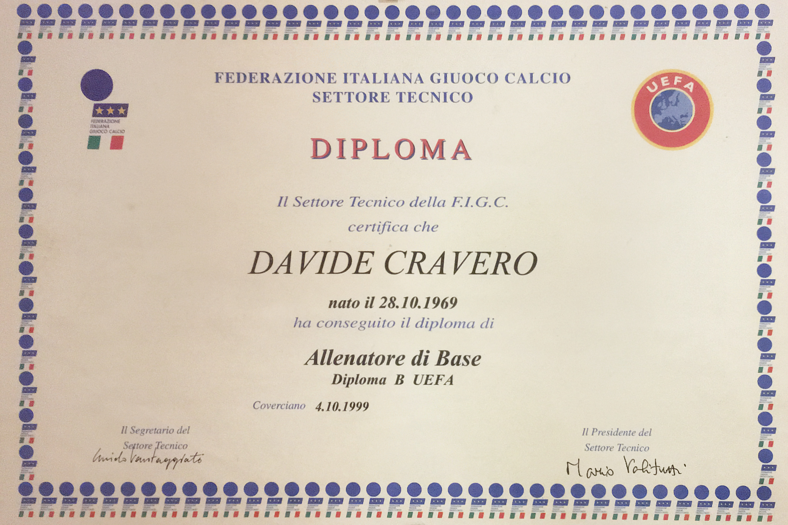 Sono nato a Torino il 28 ottobre 1969. Dopo le scuole superiori ho frequentato l’ISEF di Torino, iniziando fin da subito a lavorare nel settore sportivo, in particolare nel calcio. La mia carriera è partita sui campi come allenatore e poi come responsabile della Scuola Calcio nei settori giovanili di Parma, S.S. Lazio e Torino FC Spa.