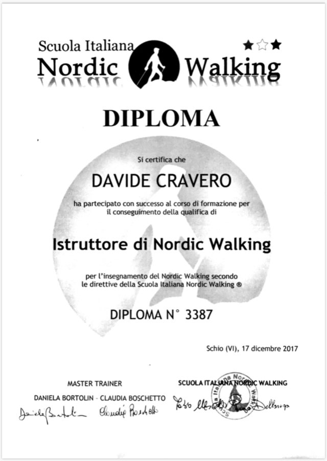 Accanto al calcio ho coltivato una forte passione per il cammino: sono istruttore FIDAL di Fitwalking e di Nordic Walking ASI e l’Atletica. Con il Centro Studi SUISM di Torino ho condotto una ricerca sul consumo energetico nel Fitwalking e nel Nordic Walking, utilizzando anche bastoncini appesantiti. Ho sviluppato protocolli e attività come il “FN Walking” e l’“Acqua Walk” presso il Centro Sportivo Oasi Laura Vicuna di Rivalta (TO).