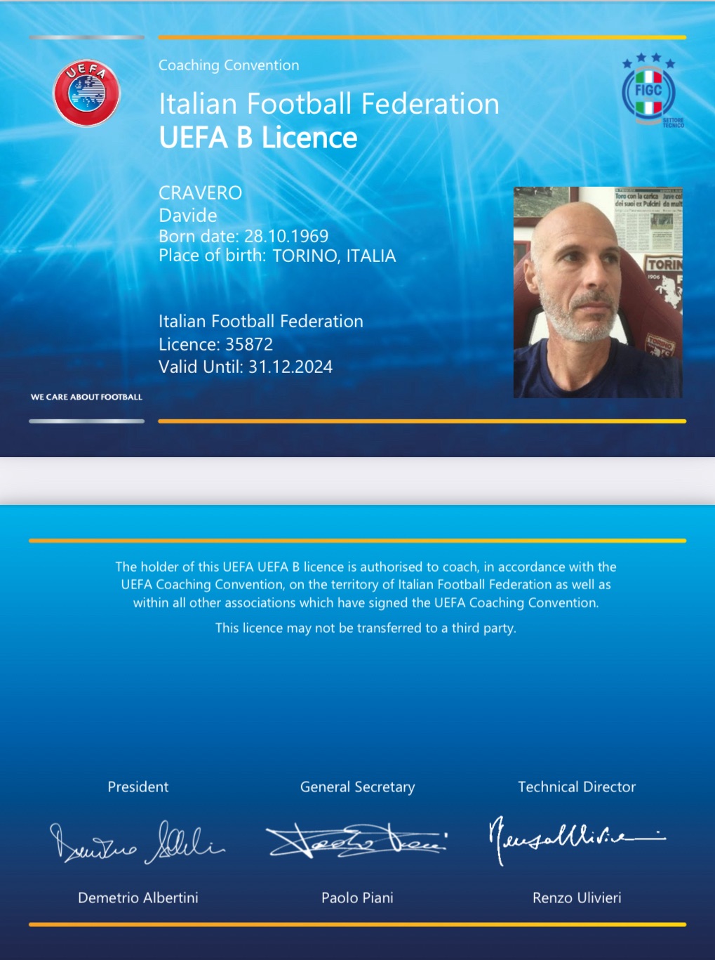 Dal 2020 al 2025 ho ricoperto il ruolo di Responsabile dell’Attività di Base dell’A.C. Cuneo 1905 del Chieri Calcio e quello di Coordinatore dell’Attività di Base FIGC per la provincia di Cuneo.