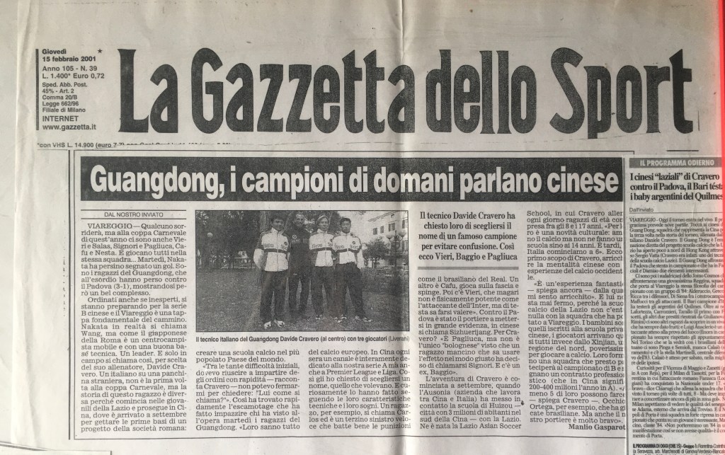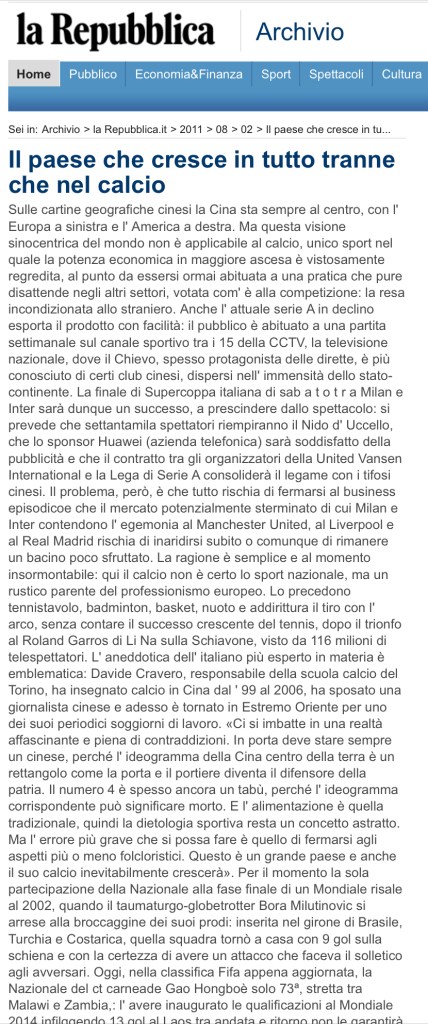 Da Tutto Cina, articolo sul campionato di calcio Cinese